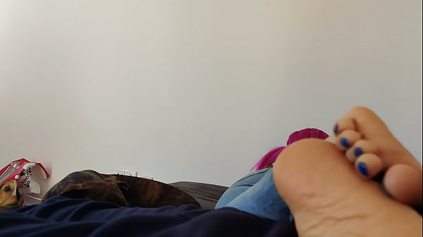 एक बाल टाई के साथ सह करने के लिए मेरी बहन के पैरों का उपयोग करना
