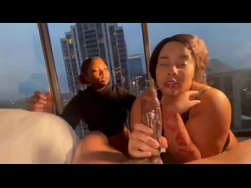 Sexy ebony threesome horny wife and friend fucking bbc